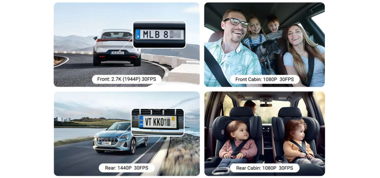 All channels record at the same time, ensuring there are no blind spots during driving or parking incidents.